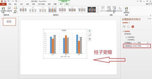 2、在弹窗里找到分类间距,就能调柱子之间的空隙了。