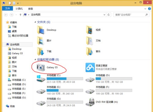 一、用数据线将安卓手机连接电脑,然后在电脑找到手机,一般显示手机型号(比如下图中的Galaxy S5,双击打开。