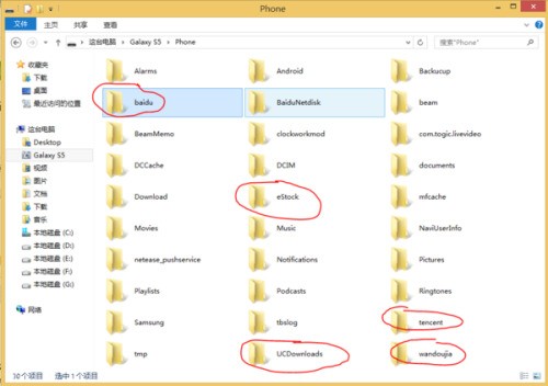 目前很多应用产生的文件夹,命名方式之一是产品的拼音或英文名,另一种是其产品名称的首字母缩写。比如下图中的“wandoujia”、“UCDownloads”、“baidu”、“eStock”和“tencent”,分别是豌豆荚、UC浏览器、百度输入法、益盟操盘手和QQ五个应用的文件夹。如果你已经卸载了这些应用,则可以将其残留文件夹一并删除。