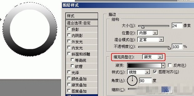 描边样式的主要选项包括:大小(Size)、位置(Position)、填充类型(Fill Type)。