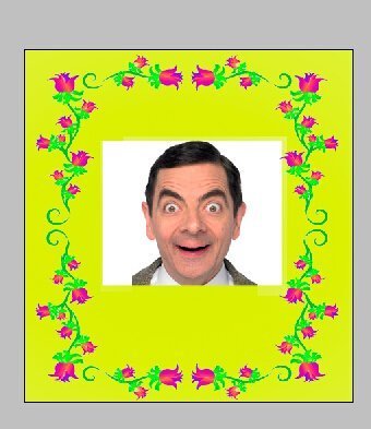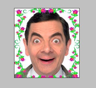 将素材导入照片中,并调色花边尺寸.效果图如下(注:素材边框一定要PNG或PS格式,镂空格式)。