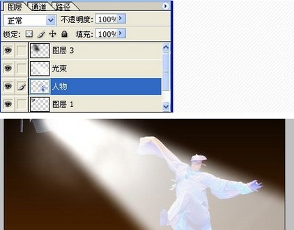 9.接下来,该人物出场。导入一张人物图片,将其放置在光束图层的下方,并调整其大小。最终效果如图: