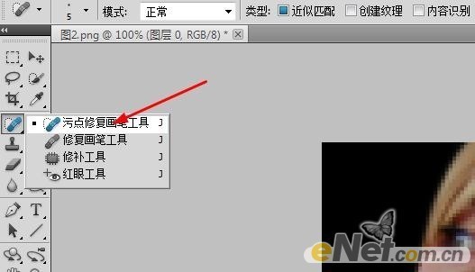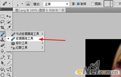 使用“污点修复工具”结合“修复画笔工具”给女孩治疗皮肤上的黑点