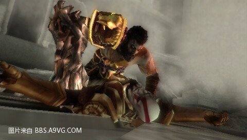 从某处跳下去后会遇到某个冲你嚷的大叔,不用理会他,进门触发剧情,碰见了泰坦神族的火焰巨人thera,他要求奎托斯释放他,答应把自己的力量借给奎爷,大家不用客气,收下吧,之后获得新的力量—thera’s bane,按住R键再攻击的话,可以给武器附加火焰属性,对付厚重铠甲的怪物很有效,小诀窍——□ □ △ R,三角的动作做出来了再按R. 只有三角消耗的红. 但是能把怪打到身上有火,过几秒会爆炸,很好用——感谢MOKE520的提供
