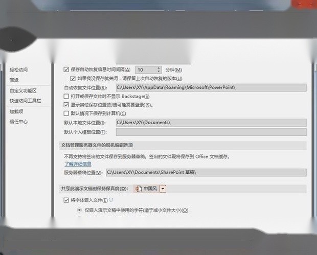 记得点击菜单栏【文件】-【选项】-【保存】,将字体嵌入文件哦!(选上面一个就好)