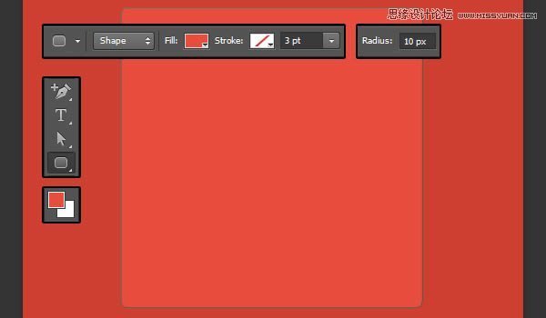 设置前景色为#e74c3c,挑圆角矩形工具,选择形状在选项选项栏,并设置半径为10。