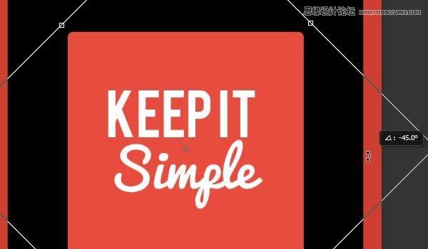 去编辑>自由变换(按Ctrl / Cmd + T)进入自由变换模式。然后,按住Shift键,然后旋转黑色矩形-45°(逆时针)。