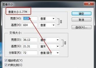 5、在“图像大小”窗口中我们可以看到这个原图的大小为1.77M,如下图中内容所表示。