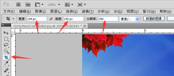 3、弹出来的窗口先改分辨率到150像素/英寸,然后再调宽度和高度,记得勾选约束比例避免变形。