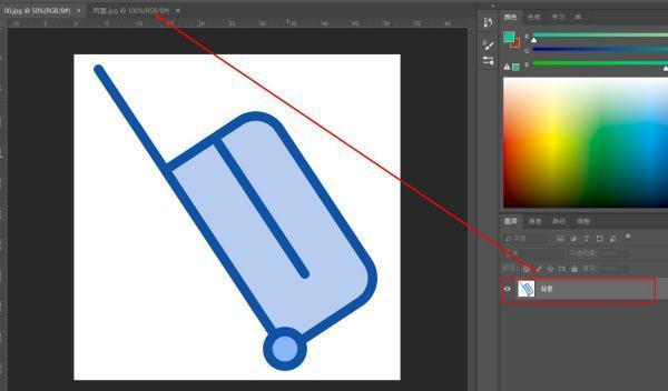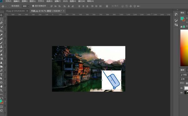 3、先找到想要放在另一张图片上的图片,长按鼠标拖动图层到另一张图片的窗口中。