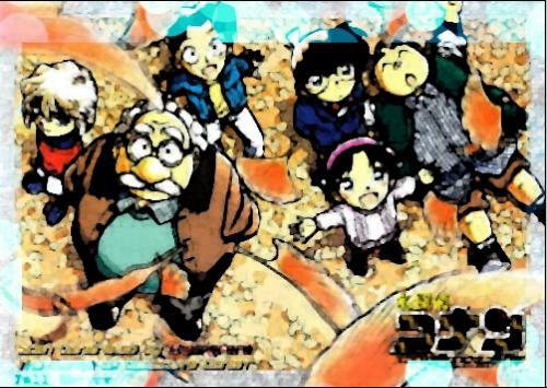移动工具,把它拖到柯南的文件上面,设置为 滤色