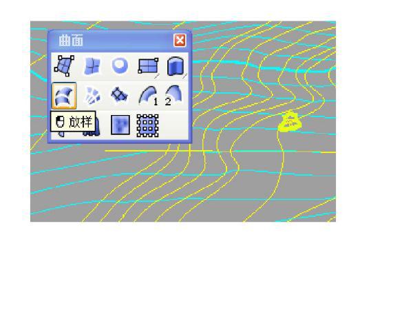 工具栏第一个图标是用等高线生成地形,先全选所有等高线,再点它,地形就自动生成了。