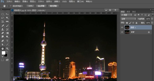 开启图片后,按下快速键Ctrl+J两次,复制两个背景图层【图层1】和【图层1拷贝】。接着单击一下【背景】图层旁的眼睛图示,暂时关闭背景图层。