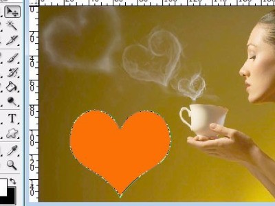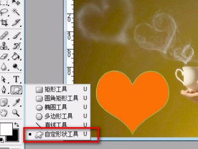 2、在PS的左边工具箱中,选择自定形状工具,绘制心形图形。