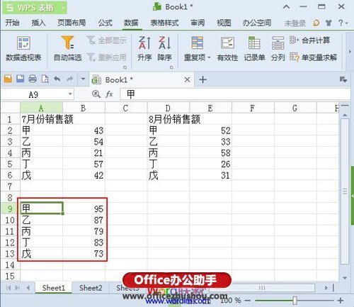 4.将“源数据”表中的A列复制到“处理过程”表A列里。