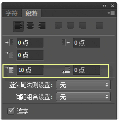 会同时打开“段落”面板,可以设置整段靠右(左)多少、首行空多少,段前(后)多少(点)