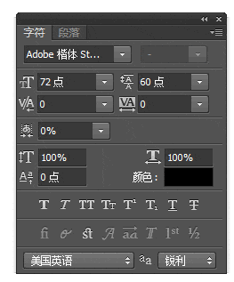 字符面板可以调整字符的“字体”、“大小”(?点)、“每行之间的距离”(?点)、“第个字符之间的距离”以及这的高度、宽度等。