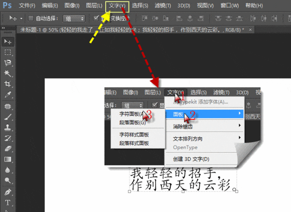 点击菜单栏中“文字”--“面板”--“字符”,打开字符面板