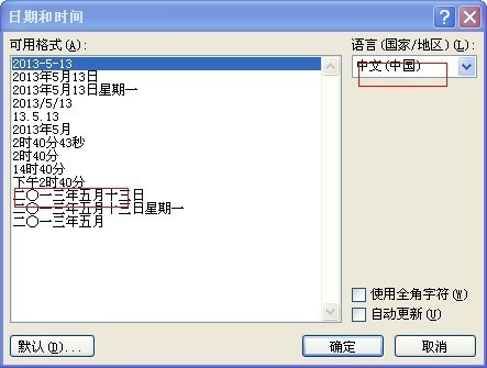 word 表格落款日期输入法默认的是2013年5月13日,我要改成二〇一三年五月十三日,请问肿么改。