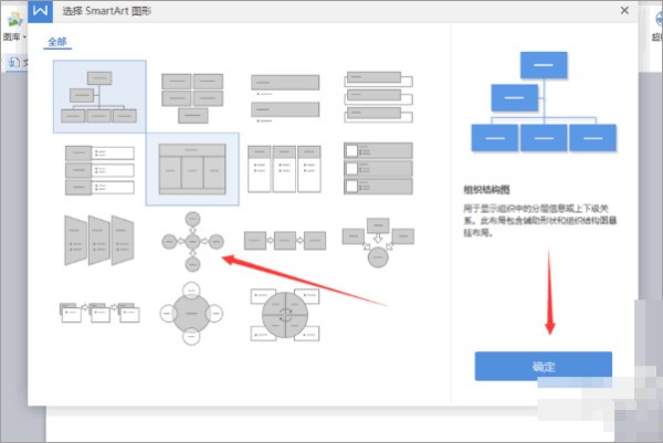3、选择自己需要的SmartArt图形,然后点击确定;