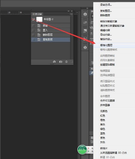 3.置入后复制多一层防止弄该烧坏并且可以和原图对比,右键单击栅格化图层关闭其中一个小眼睛。