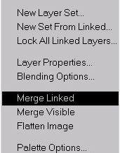 3、按住Alt键(Mac机请按Option键),同时单击图层面板右上方的小三角箭头,打开菜单,按住左键不放并指向命令“Merge Linked”(合成链接图层),单击该命令。注意,这时必须势必担划感孩具支认手措按住左键不放,否则菜单只会闪现一次。