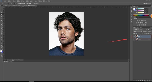 4. 把图层1复制一个副本,拖到底图2上面,打开底图2的眼睛,让它显示出来。