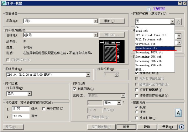 颜色相关打印样式表 (CTB) 用对象的颜色来确定打印特征(例如线宽)。 例如,图形中所有红色的对象均以相同方式打印。 可以在颜色相关打印样式表中编辑打印样式,但不能添加或删除打印样式。 颜色相关打印样式表中有 256 种打印样式,每种样式对应一种颜色。