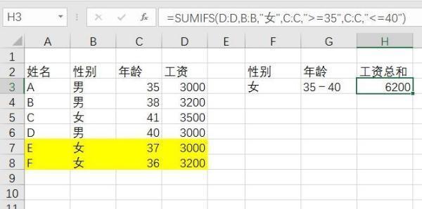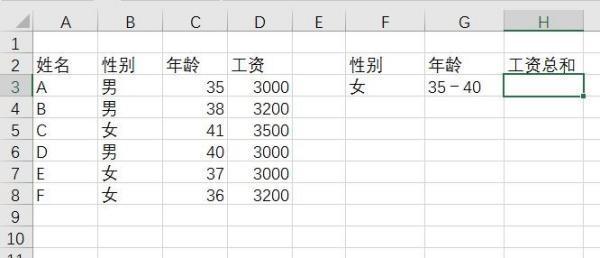 举个例子,如果要统计某个部门员工的工资之和,要求该部门员工每月工资超过1万元,并且每月至少出勤2天以上,则可以使用以下公式: