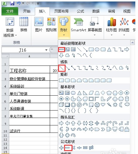 4.具体的横道可以选择EXCEL中的插入命令,横道可以用颜色或者形状、线条来表示。