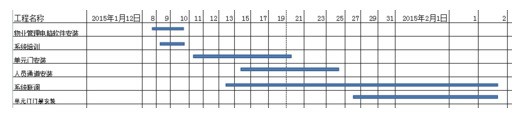 1.横道图主要体现一个项目的部分施工的进度体现,比如安装一个大门需要多少天,总工程计划工期多少天完成,如下图。