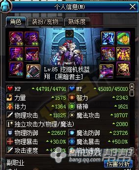 图中武器为锻造8的85史诗短剑阴剑-莫邪,独立加成为449(85SS武器应该都是这个数字),接下来就为大家测试固定伤害技能的伤害。