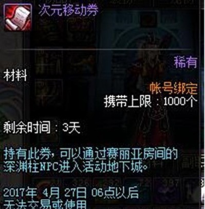 DNF游戏中,玩家可以设置一键捡物来简化操作。然而,每次只能使用一次。要进入赛利亚房间并获取深渊柱碎片,需要使用一张“次元移动卷”。每天晚上登录和在线都可以获得一张“次元移动卷”。进入深渊柱后,在弹出的选项卡中选择“地下城入场”,即可进入其中。