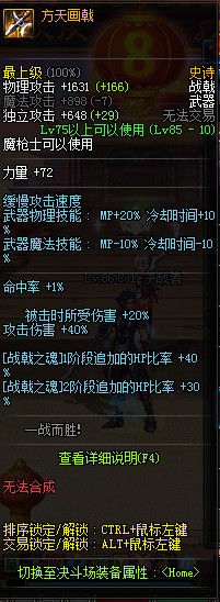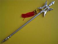 方天画戟的具体参数 材料:高碳钢 全长:65cm 宽:30cm 刀重:2500g 刃口:普通 柄长:26CM 刃长:39cm 刀厚:0.8cm