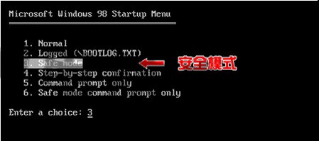 2. 选择安全模式,可能会遇到英文的安全模式如阶图1选择安全模式