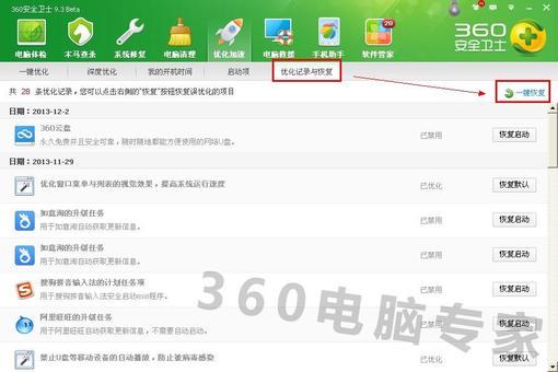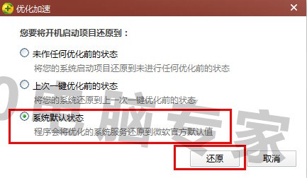 恢复系统默认服务(360安全模式开机加速里面选择一键恢复)