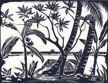 简单黑白木刻版画风景素材