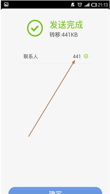 7、发送完成如图会显示换机助手发送成功,以及数据大小,这样就传输完成了。