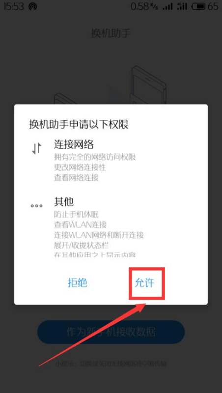 2、允许换机助手申请的权限。