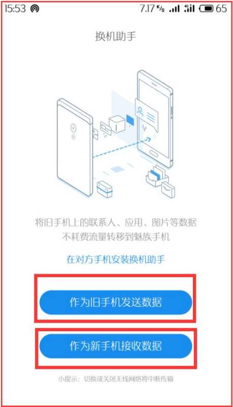 3、然后旧手机点击作为旧手机发送数据,新手机点下面的作为新手机接受数据。