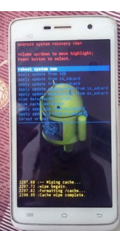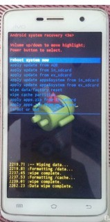 7.大概几秒钟,马上又会弹出recovery模式最初界面,然后选择reboot system now(一般默认这一项,不需要重新选择。)按开机键确认重启手机。