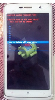 4.同样,使用音量加减键选择yes--delete all user data,按开机键确认;