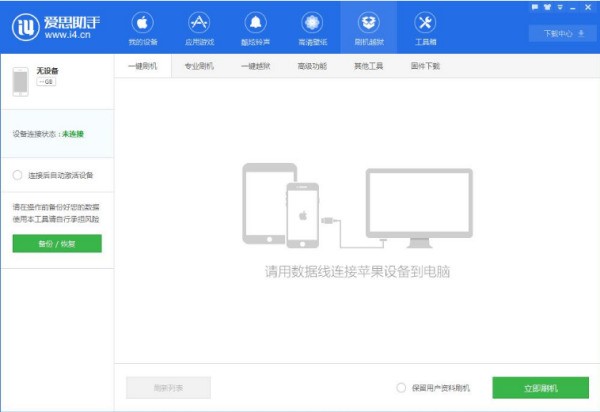 1.打开爱思助手,未连接手机前就可以看到【一键更新】按钮。
