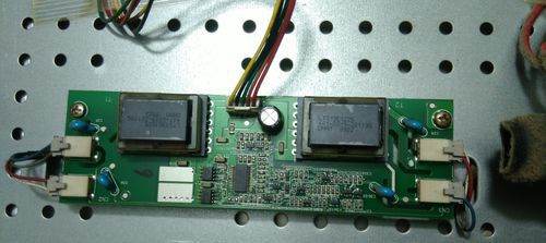 四、根据故障现像与测量结果,分析故障有可能在屏幕的高压供电电路上。为了快速解决问题,免去了测量的过程,直接用手头的高压板代替原高压板进行试机。先将原有高压板的高压端子全部拔掉,并用螺丝批扭下固定螺丝,取下高压板。