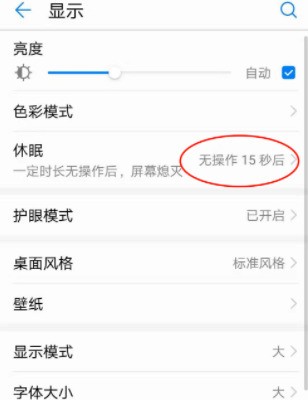 5、当我们修改后,就能看见显示界面的休眠变成无操作15秒后。
