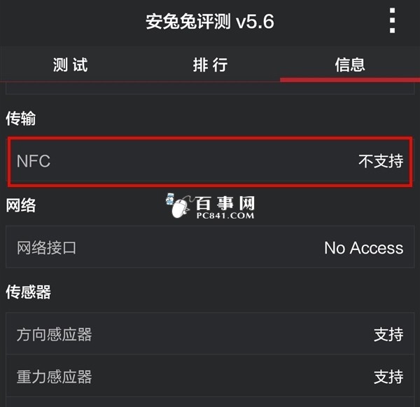 此外,我们还可以从小米Note安兔兔测试软件检测得知,小米Note确实也不支持NFC,如下图所示: