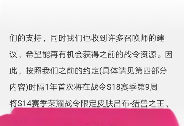 总结综合上述,开心认为,这次新的赛季荣耀战令迎来了很多改变,许多款新皮肤上架,包括了这次首次返场,虽然是限时宝箱上架,但是也是官方给没有获得s14赛季皮肤的一个福利,虽然以抽奖形式,但是也是有很大几率获得的,大家尽力就可以了,如果获得不了,也没有办法,官方肯定不会直接让大家兑换的,为了保证返场皮肤一定得稀缺性,官方宝箱肯定是会设置随机的。