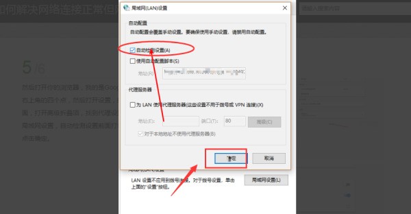 8. 在弹出窗口“自动检测设置”前的方框中打勾,然后单击“确定”。