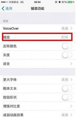 1、依次点开固续没定感脱技:【设置】-【通用】-【辅助功能】-【缩放】