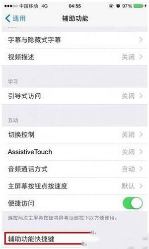 3、返回,下拉菜单到最下面,点【辅助功能快捷键】